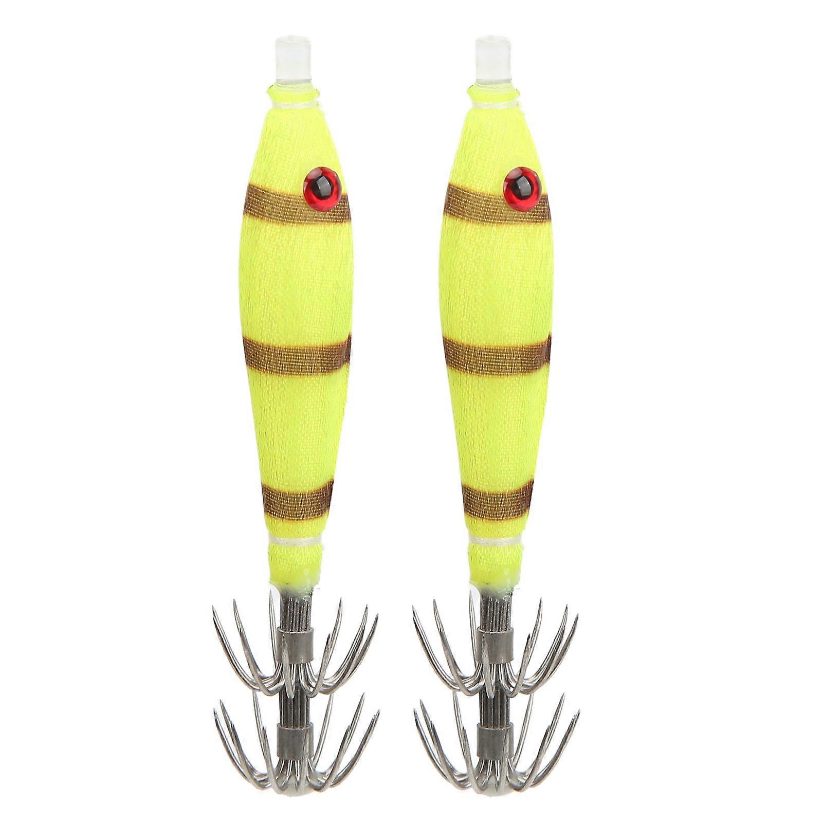 2024Squid Hook Intensive Luminous Stainless Steel Cuttlefish Jig Polishing Double Row Fishing Bait Yellow