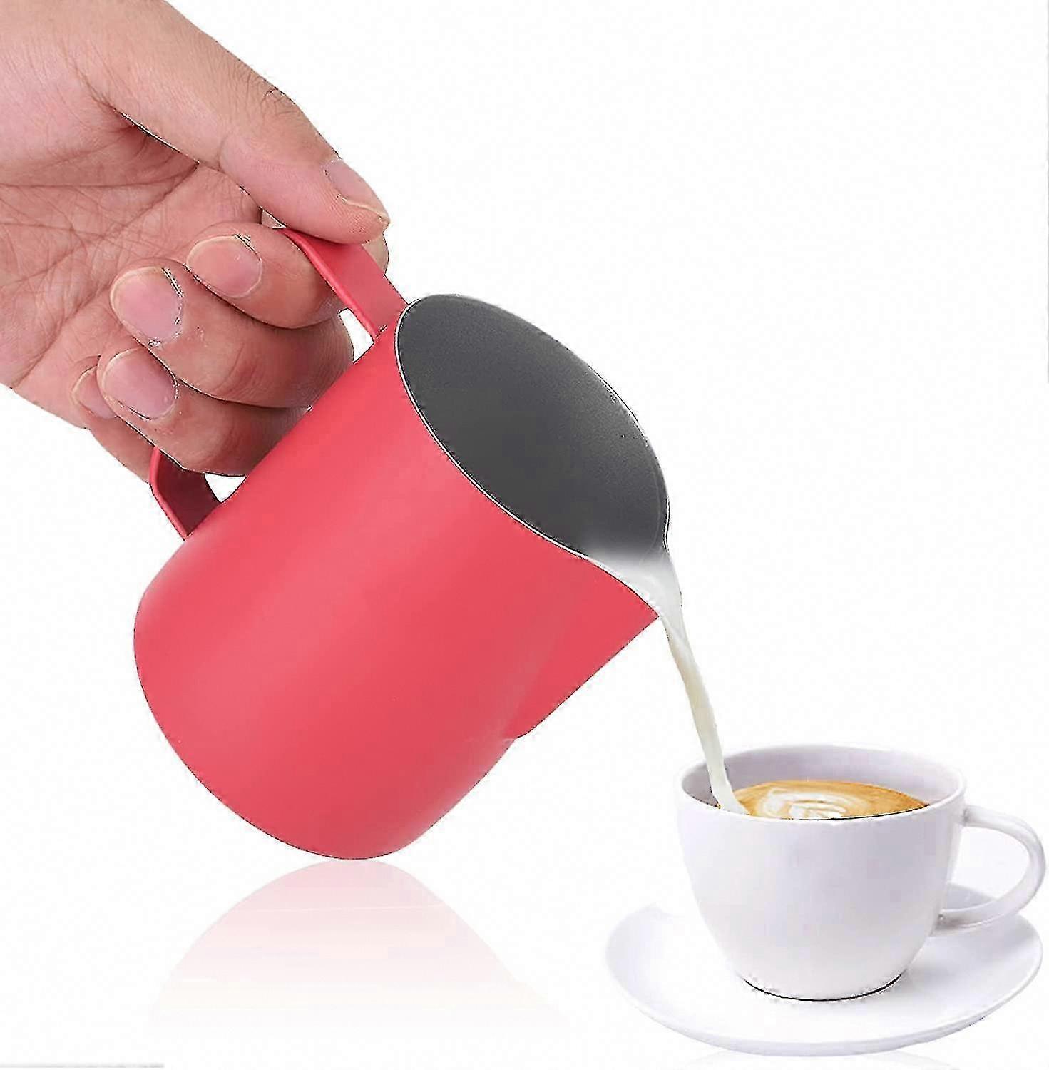 2024 Stainless Steel Milk Frother Pitcher for Latte & Coffee - 600ml / 21oz, Rose Red, Enhances Coffee Experience