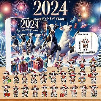 2024 تقويم العد التنازلي الجديد 24 يوما تقويم عيد الميلاد مجيء لطيف بقرة زينة عيد الميلاد قلادة شخصيات بقرة عيد الميلاد وملحقاتها عطلة