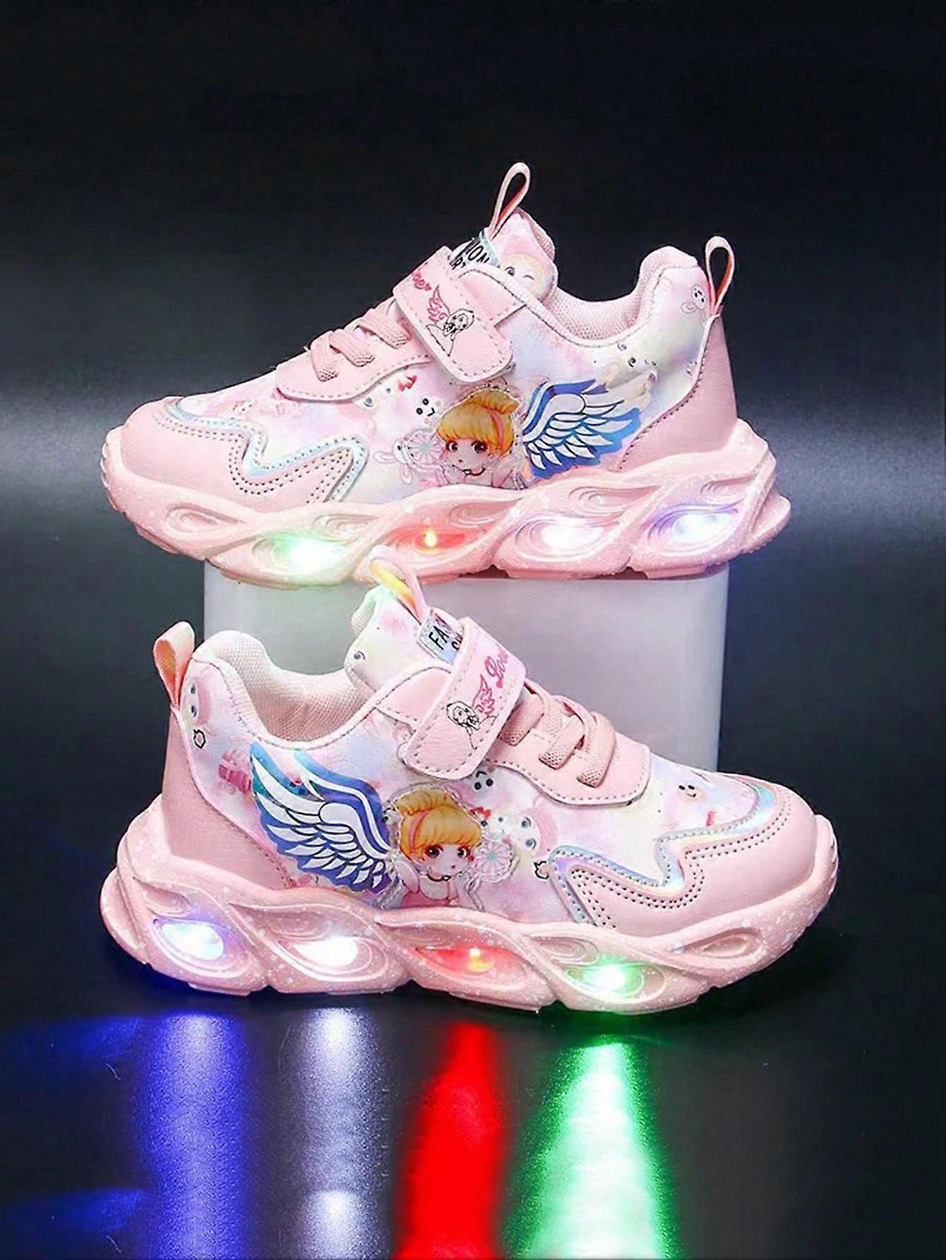 2024 Autumn/Winter New American Style Girls Shoes, LED Lights Sport Sneakers, Fashionable Children Casual Glowing Running Shoes