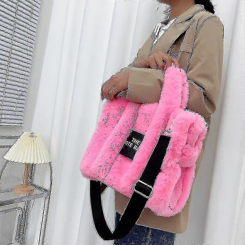 2024 Designer Faux Fur Tote Bag For Women Luxury Handbags Autumn Winter Plush Shoulder Crossbody Bags Shopper Purses New