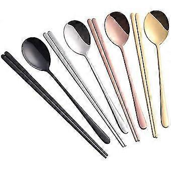 2024 4 ألوان معدنية قابلة لإعادة الاستخدام من الفولاذ المقاوم للصدأ - مجموعة ملاعق Chopstix الكورية ، مثالية لمحبي المطبخ الآسيوي