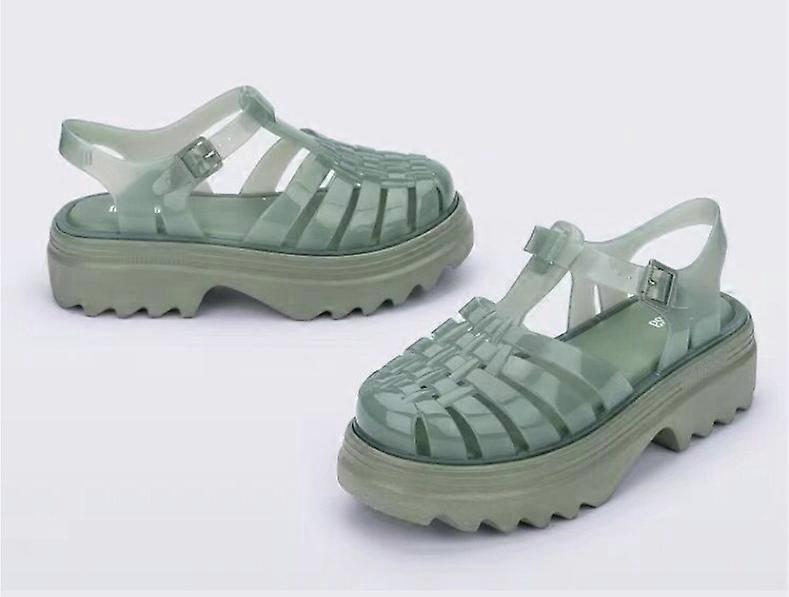 2025 New Summer Women's Sandals Hollow Knit Roman Sandals Slope Heel Jelly Shoes