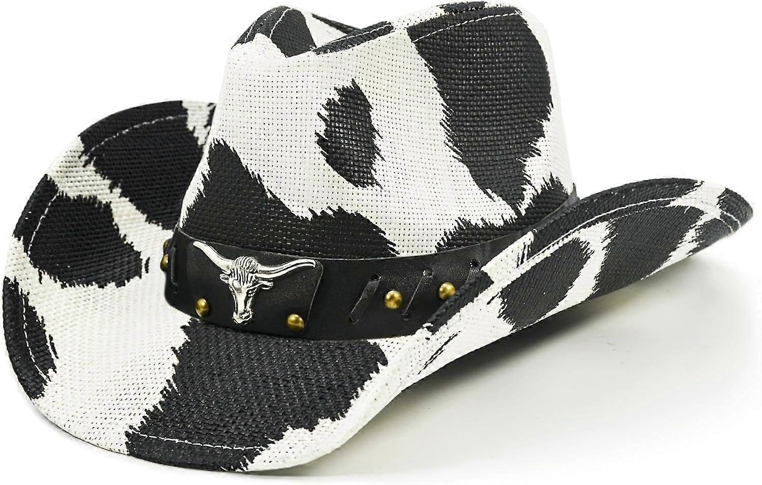 2025 Latest Model Cow Print Cowboy Hat for Women Funny Cowgirl Hat Straw Western