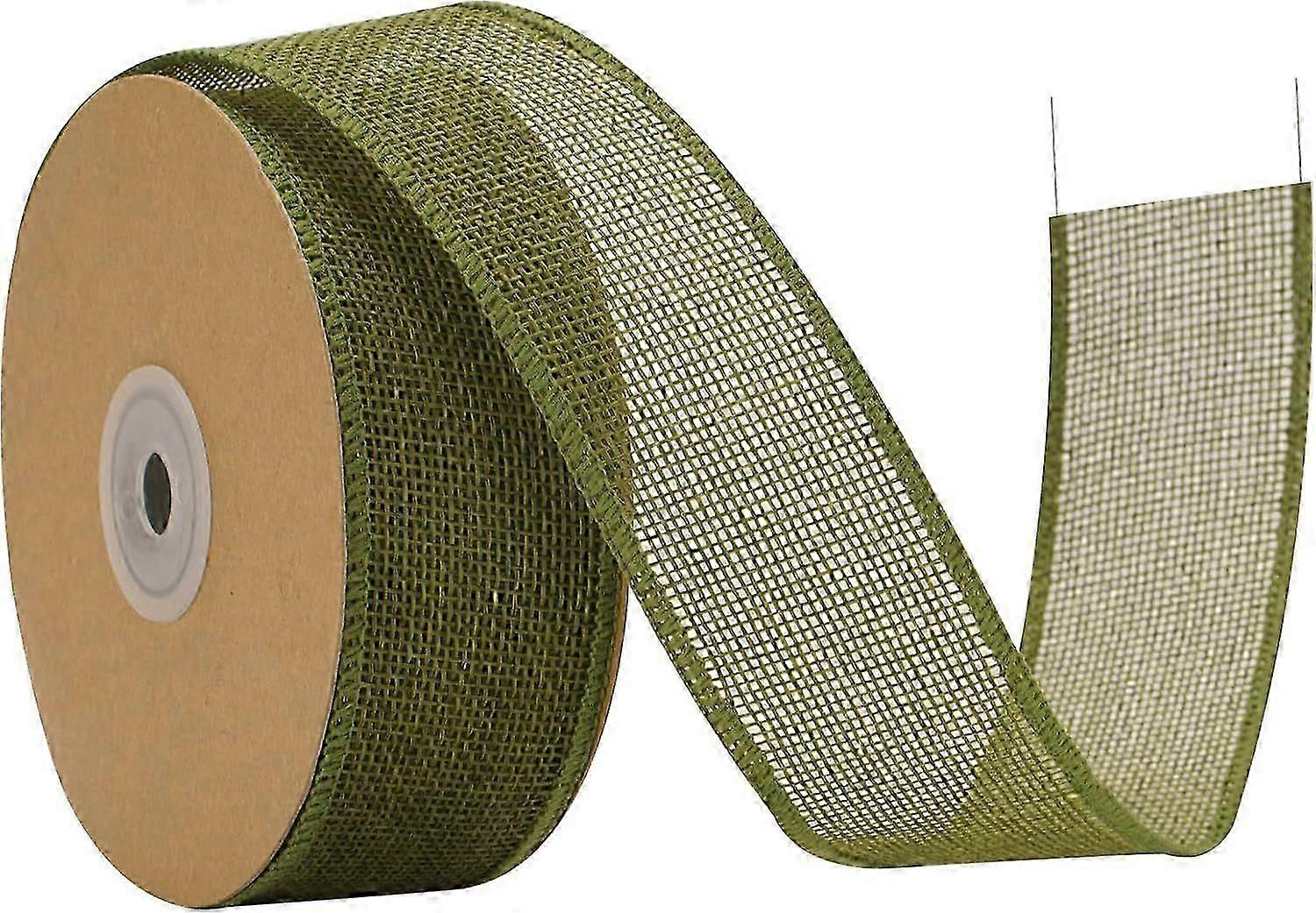 2025 Latest Model Sage Green Wired Burlap Ribbon, 1-1/2" x 10 Yards Wired Ribbons, Wi Burlap Ribbon with Spo