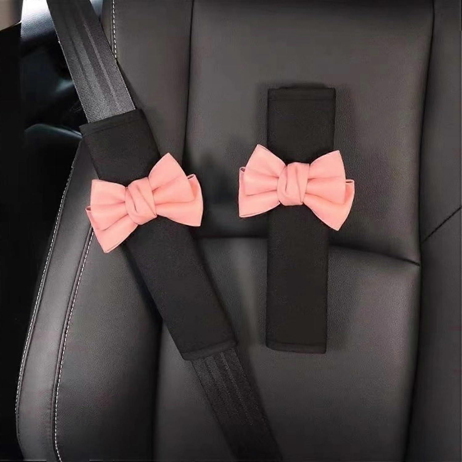 2025 Latest Model 2 Pack Car Seat Belt Covers with Cute Bow,Leather Seat Belt