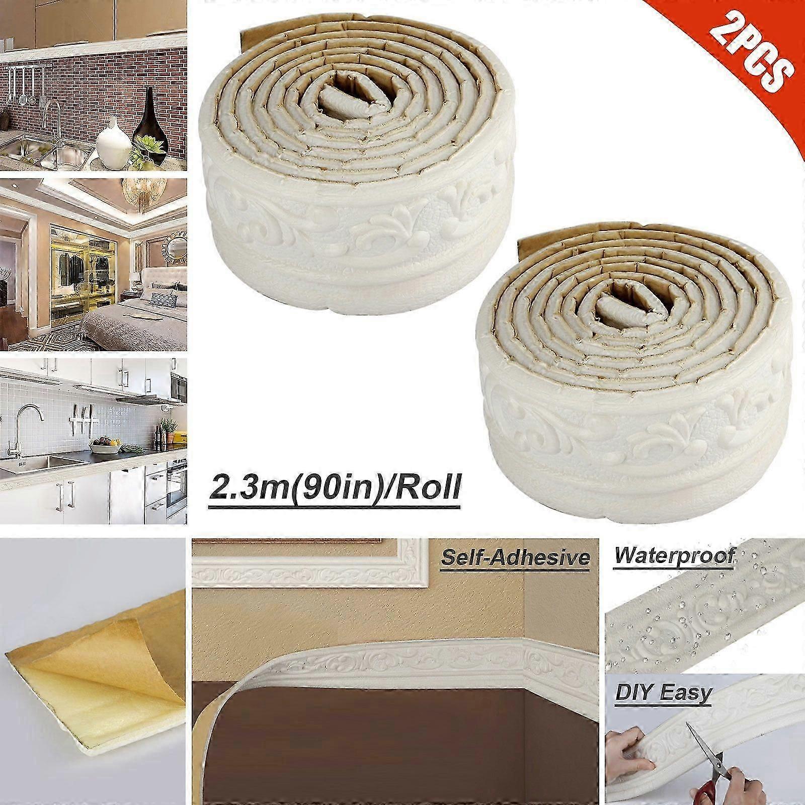 2025 Latest Model 2pcs 90'' 3D Self-Adhesive Foam Wallpaper Border, TSV Flexible Foam Molding Trim, Waterpro