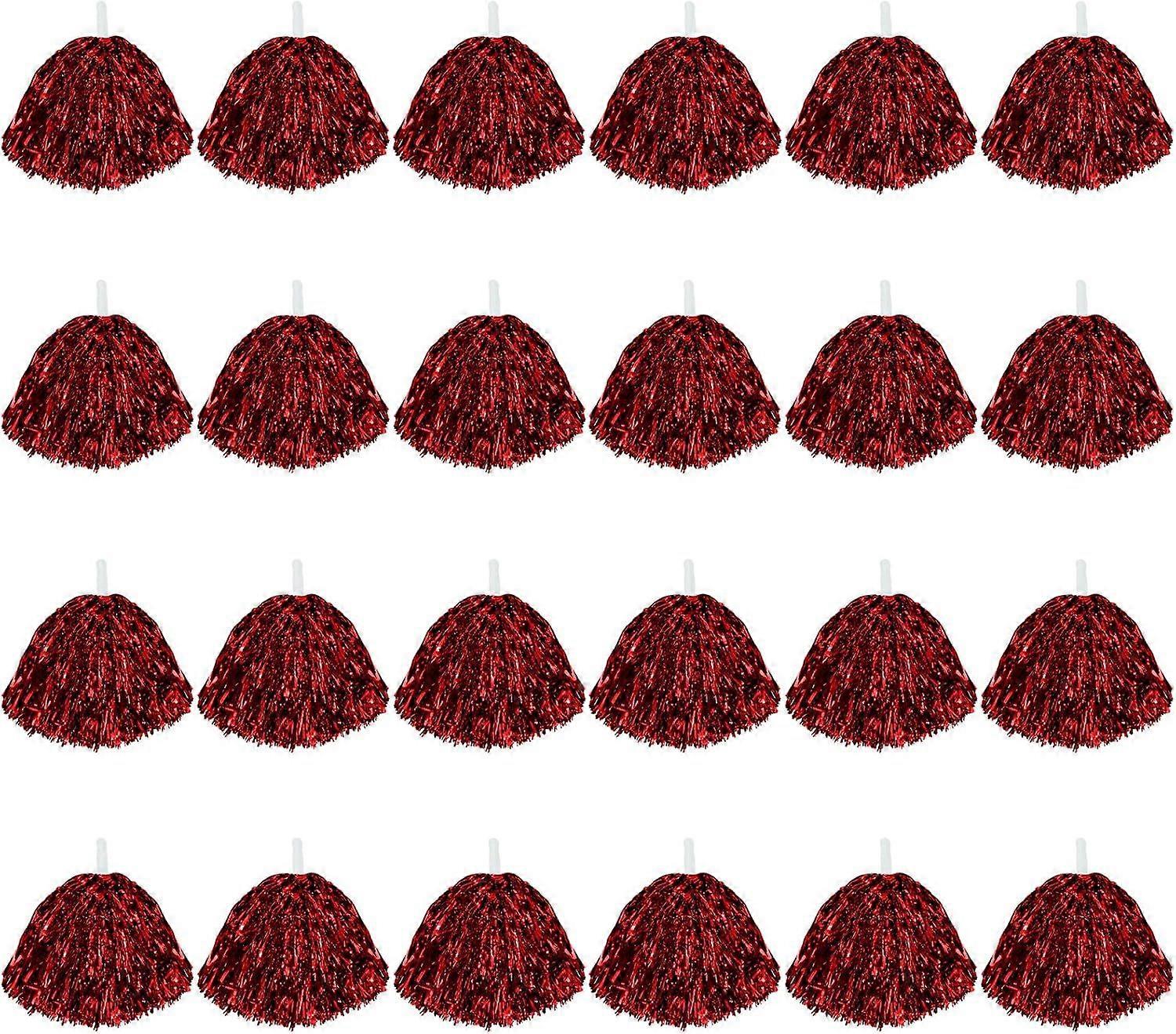 2025 Latest Model 24Pcs Cheerleading Pom Poms, 1 Dozen Handle Metallic Foil