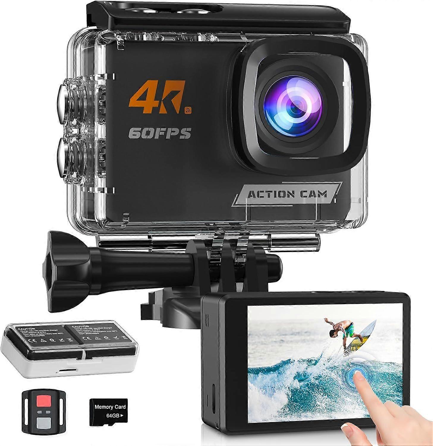 2025 Latest Model 4K60FPS Action Camera Touchscreen, 40M Waterproof Underwater