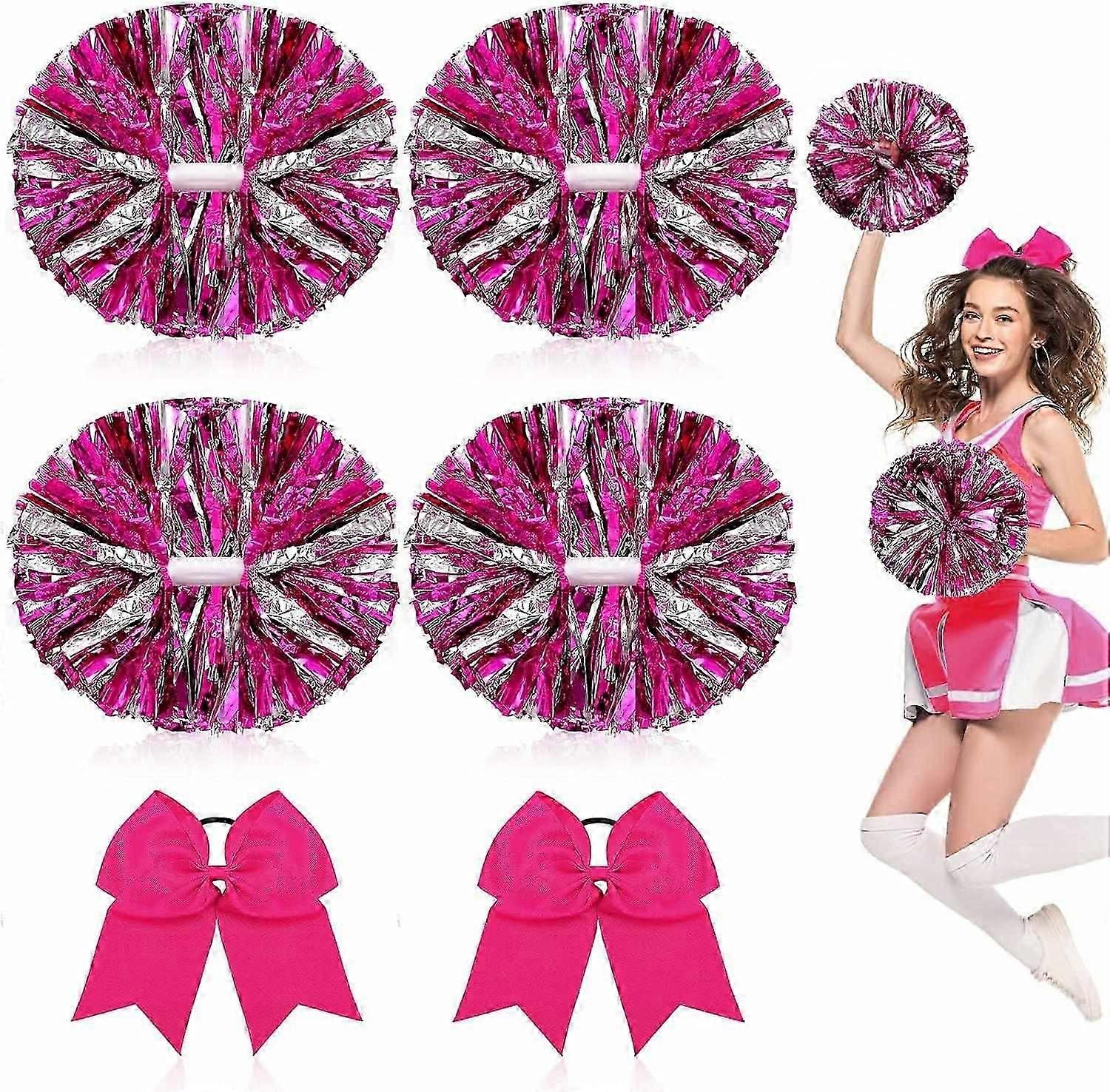 2025 Latest Model 6 Pcs 13 Inch Cheerleading Pom Poms and Large Bows for Girl