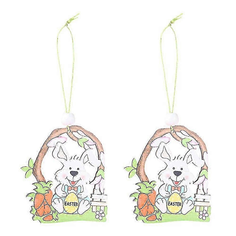 2025 Latest Model 2 Pcs Wooden Easter Pendant, Bunny Crafts Hanging Ornaments