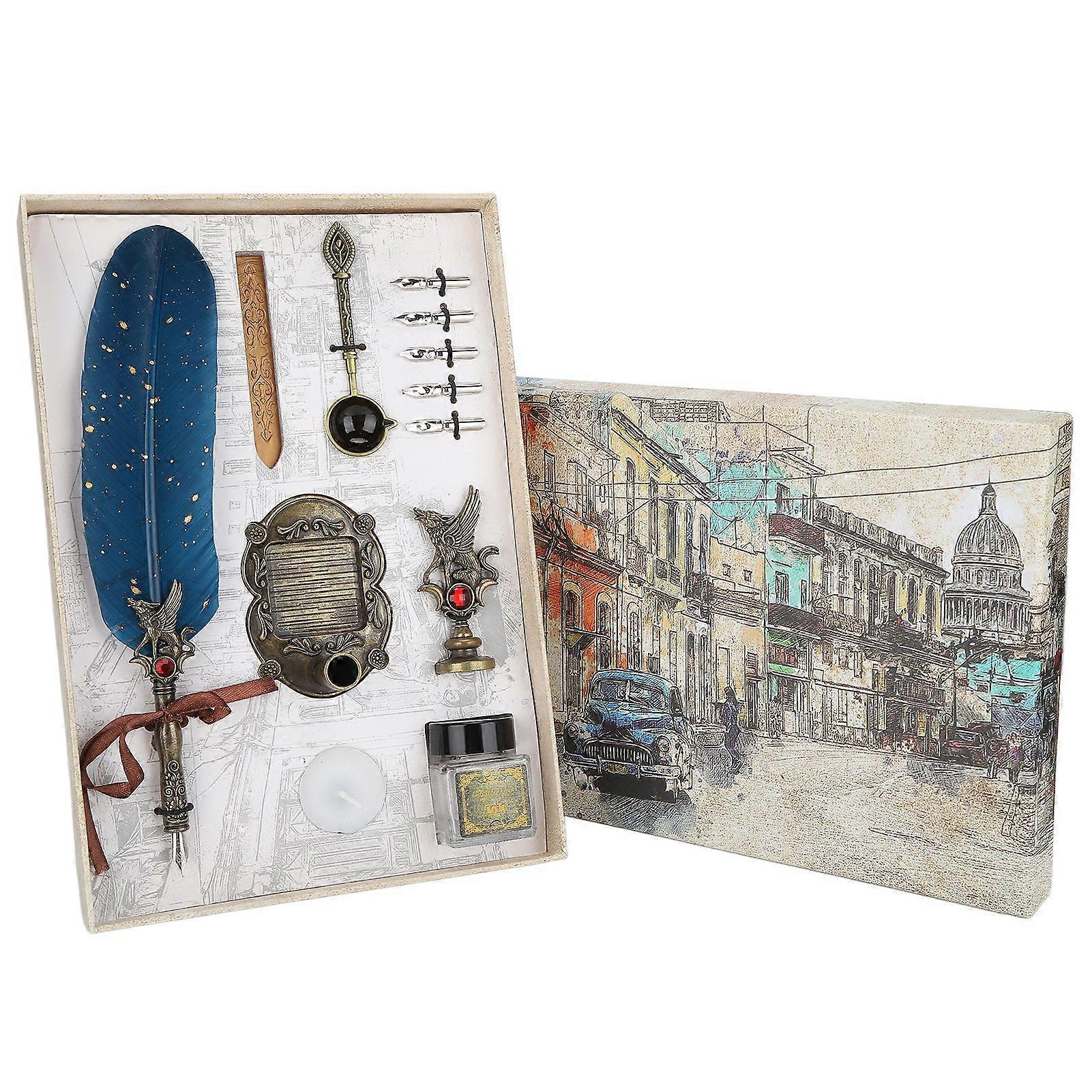 2025 Latest Model Feather Pen Set European Style Retro Dip Water Feather Pen