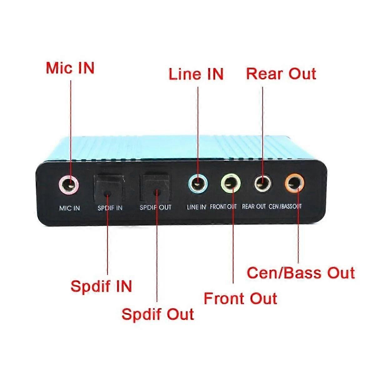 2025 New 5.1 USB Audio Adapter External Sound Card with S/PDIF Digital Audio, for Laptop, Blue