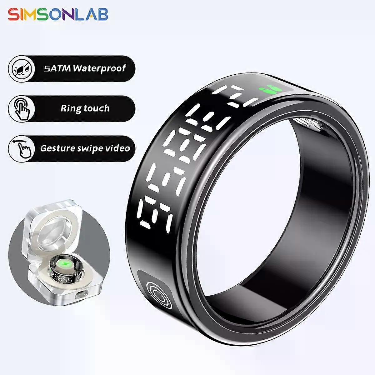 2025 New SR08 Smart Ring For Men Women LED Display Sleep Health Monitoring 5ATM Waterproof Charging Case Multi Sports Modes Gift