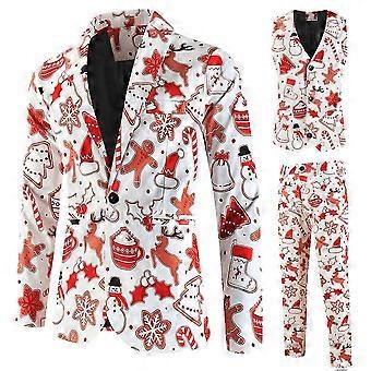 2025 مجموعة بدلة رجالية على غرار عيد الميلاد بدلة سهرة مطبوعة من ثلاث قطع بدلة كاجوال
