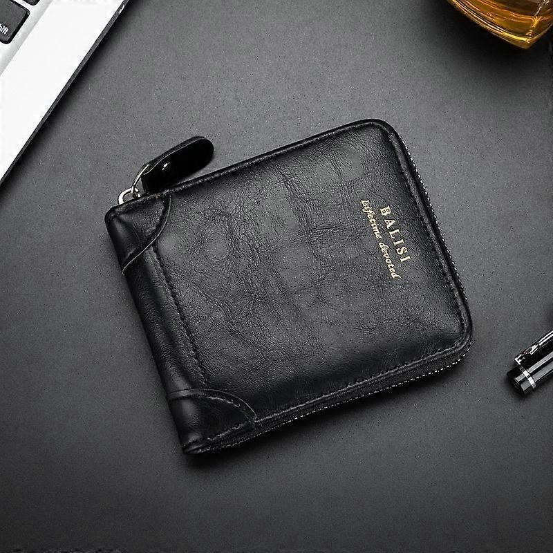 2025 New Men's Wallet PU Leather Purse Zipper Retro Style Short Wallets Men Card Holders Coin Storage Money Bag