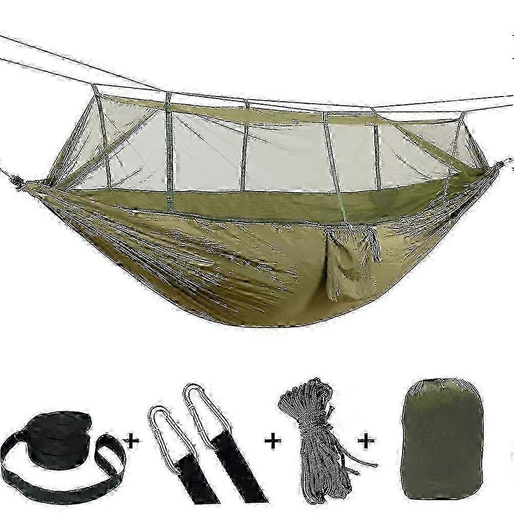 xPROFESSIONAL CAMPING HAMMOCKS - Hammocks constructed of high tenacity and breathable 210T Parachute Nylon, it's the strongest and most lightweight fabric. Our Hammock size: 260x140cm (The perfect hammock length is 60cm longer than your height), safely support up to 200 kg. For Double-Sided use, with or without mosquito nets to meet your need. xCOMFORTABLE SLEEP SYSTEM - Our Hiking Hammock with a ventilative Nylon Mosquito Net to keep out those bothering bugs when you sleeping overnight in the Nature. Mosquito Net hanging by 2 hooks to make full use of the space inside the hammock and increase the mobility of the air, as if it's not exist, so that you can better enjoy the happiness of being close to nature with your family! xSUPER LIGHTWEIGHT and COMPACT - Our Camping Hammock can pack down to the size 26x20cm, weighs only 0.68kg (Includes 2 iron carabiners and 2 nylon tree straps and 2 nylon ropes). The Stuff Sack sewed in the hammock can be used to hold your keys, sunglasses, bottles, etc. Great for a nice nap or just relaxing with nature. xDURABLE and RELIABLE HAMMOCKS - Constructed of durable 210T Parachute Nylon, tear-resistant, breathable, quick-drying and easy to clean. Triple-Stitching and ultra-strong nylon straps provide reliable support to reduce pressure points. A durable and comfortable hammock for both adults and kids. It's also an awesome gift for anyone who loves the outdoors. xEASY TO SET UP TRAVEL HAMMOCK - All in one set! Just take less than 3 minutes to set it up. Perfect for Camping, Hiking, Backpacking and emergency survival, also great in your back yard. Our practical camping hammocks offer a Comfortable, Useful, Money-saving alternative if you want to get really adventurous Note: Due to the light and screen setting difference, the item's color may be slightly different from the pictures. Please allow slight dimension difference due to different manual measurement. Sold by-YJL official store