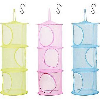 2025 New 3 Pcs Kids Storage Net, Foldable Mesh Basket Hanging Toy Organizer with S-Hook for Soft Toys and Small Items