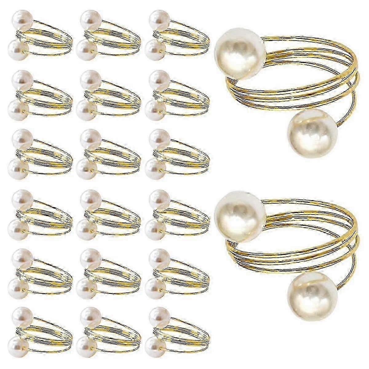 20Pack Gold Napkin Rings, Pearl Napkin Ring Set, Metal Spring Napkin Holder Table Decorations