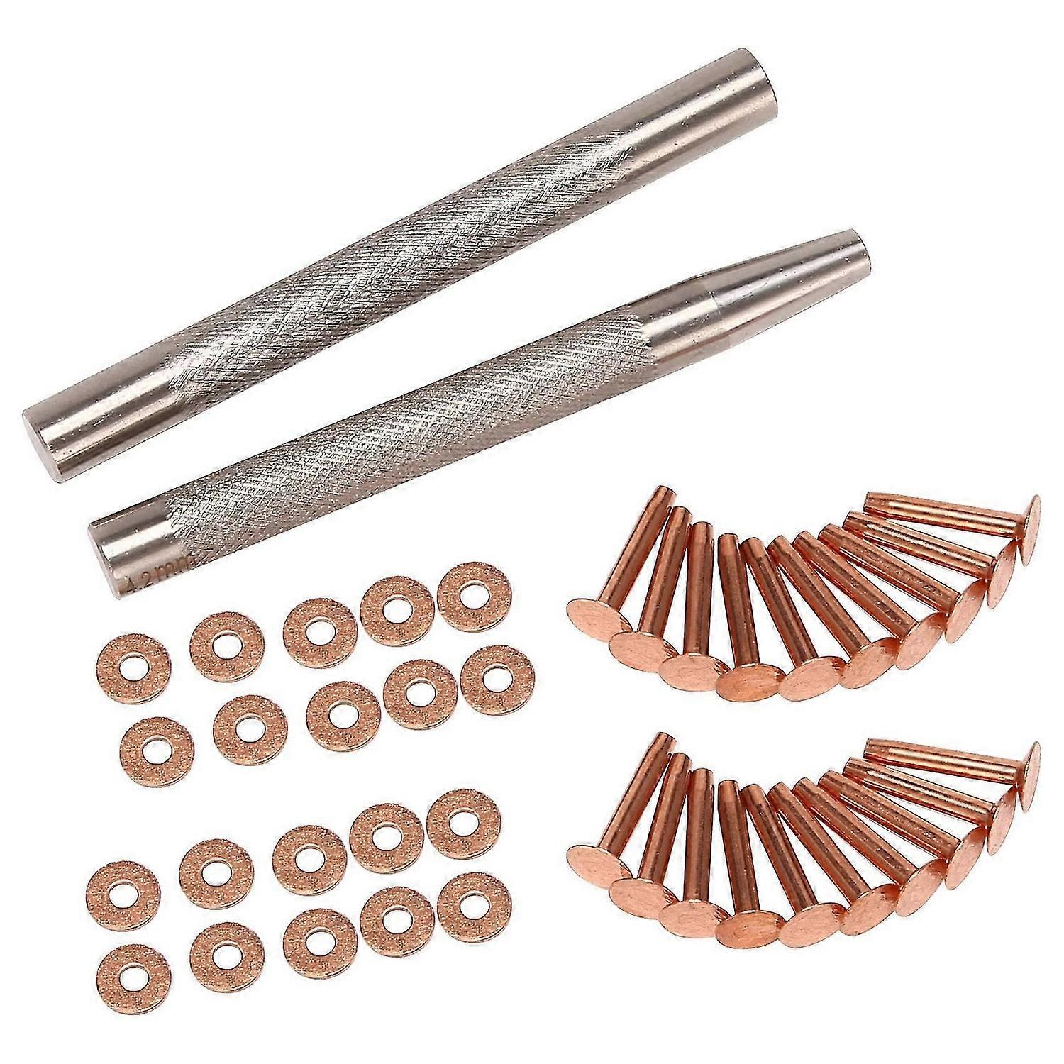 20Pack Copper Rivets and Burrs (14mm and 19mm) with 2Pcs Punch Rivet Tool for Belts, Bags, Collars,