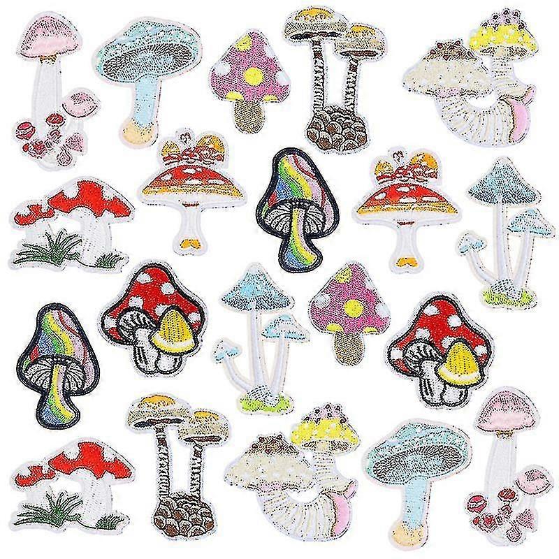 20pcs Mushroom Embroidery Patches Iron On For Clothing, Mini Mushroom Stickers Nature Patches For Clothes Dress