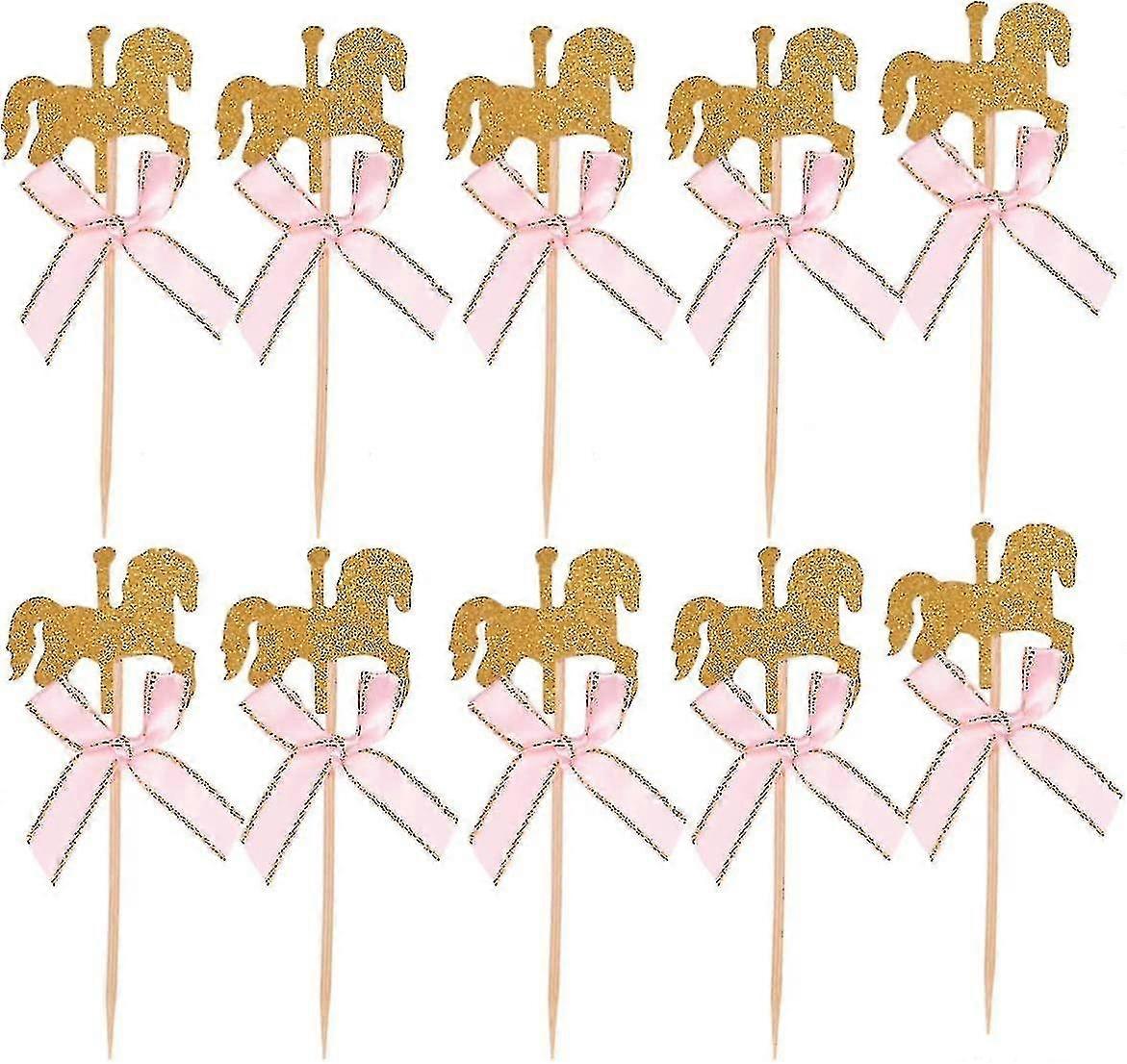20pcs Cupcake Topper Horse Toppers Carousel Cake Wheel For Decorations Lovely Carousel Shape Cake Toppers Delicate Cupcake Dessert Toppers Party Bithd
