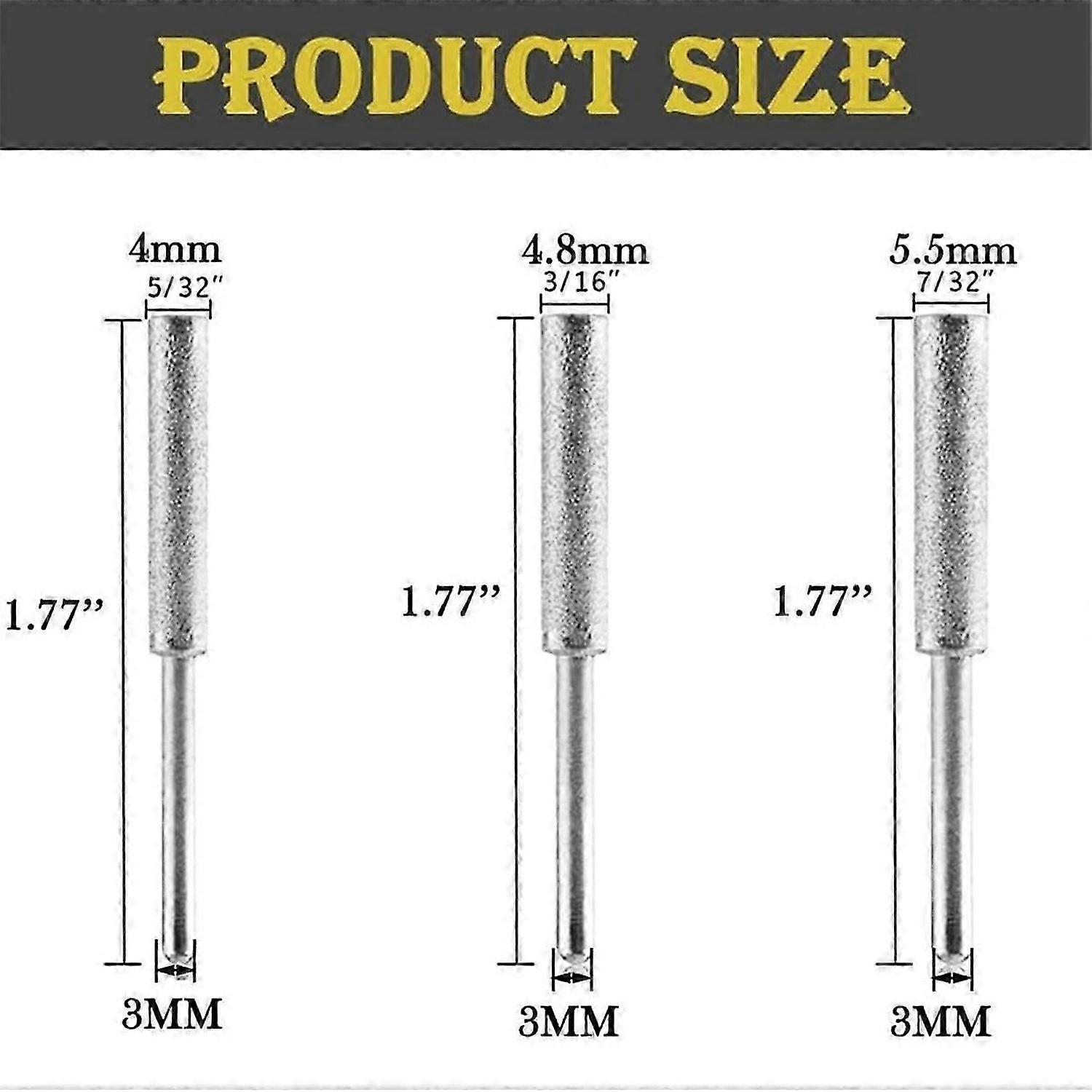 High-Speed & Efficient Sharpening: This chainsaw sharpener allows for quick, efficient sharpening without removing the chain, significantly reducing downtime. Ideal for those who prefer a swift, effective alternative to manual sharpening. Superior Sharpening Performance: Equipped with titanium-coated emery, our sharpeners a uniform and fine filing effect. The high-quality material distribution guarantees that your chain remains as as new, producing large flakes instead of sawdust. and Reusable: Constructed from robust titanium-coated emery, these chain saw sharpeners are not only tough and to breaking but also offer a significantly longer lifespan compared to non-titanium plated alternatives. Comprehensive 21-Piece Set: This set includes three sizes of grinding heads (5/32inch, 3/16inch, 7/32inch) with seven pieces each, ensuring you have the right tool for needs. The 3 mm shank diameter and 1.77inch total length make them versatile for multiple sharpening tasks. Versatile Application: Perfect for sharpening chainsaws and applicable for a wide range of other tasks including mechanical and metal work, wood, jade, and glass polishing. An excellent, practical gift for DIY enthusiasts, including dads, husbands, and lumberjacks.<br><br>Colour:Silver Material:Emery<br><br>Package Contents: 21 x Diamond Chainsaw Sharpener<br><br>Only the above package content, other products are not included. Note: Light reflection and different displays may cause the color of the item in the picture a little different from the real thing. The measurement allowed error is +/- 1-3cm.
