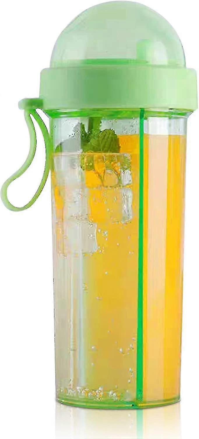 21oz Dual-use Drinking Bottle Sports Water Bottles Travel Drink Cup Water Cup With 2 Strawgreen