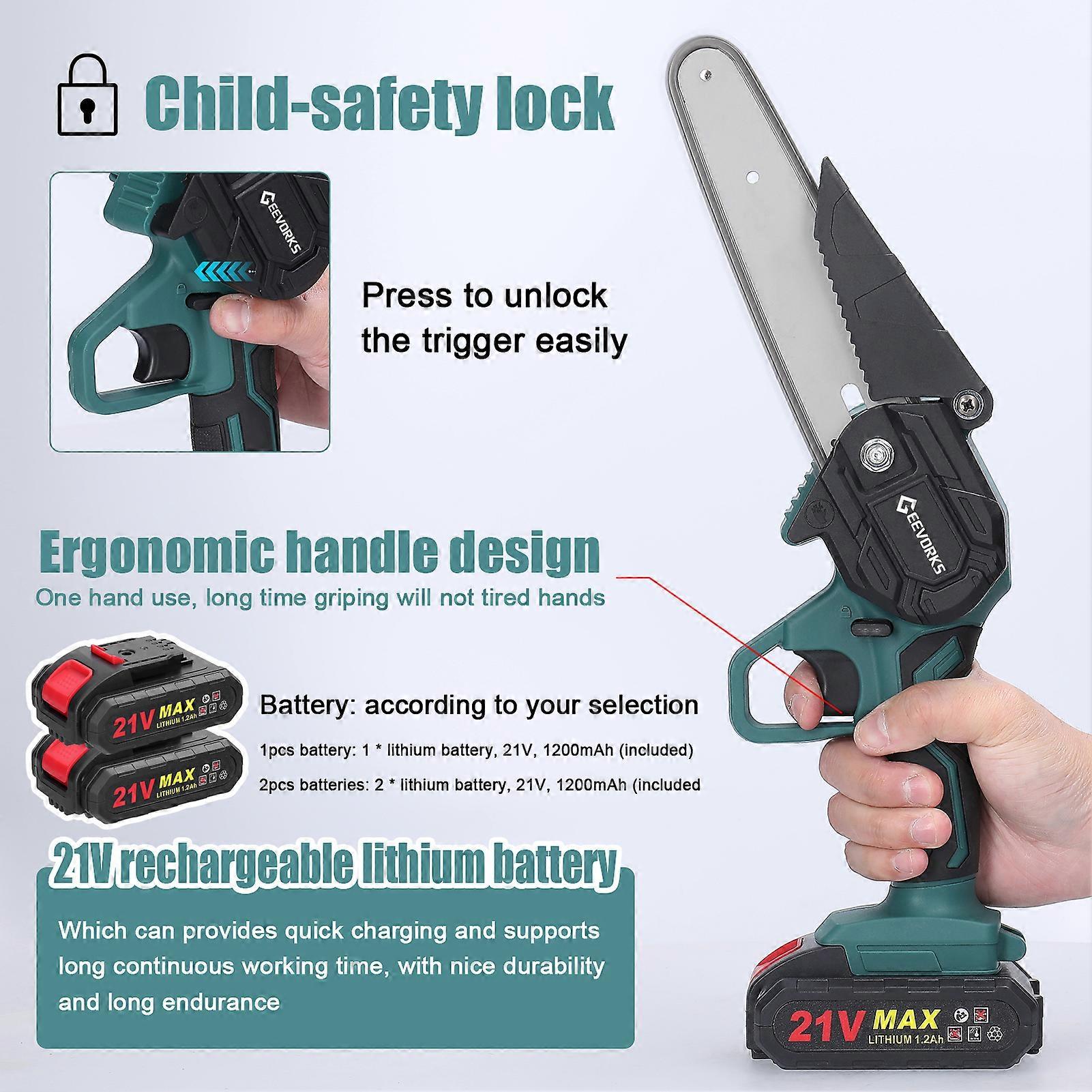 21V Portable Electric Pruning Saws Rechargeable Small Wood Spliting Chainsaw One-handed Woodworking Tool for Garden Orchard Branch Clip