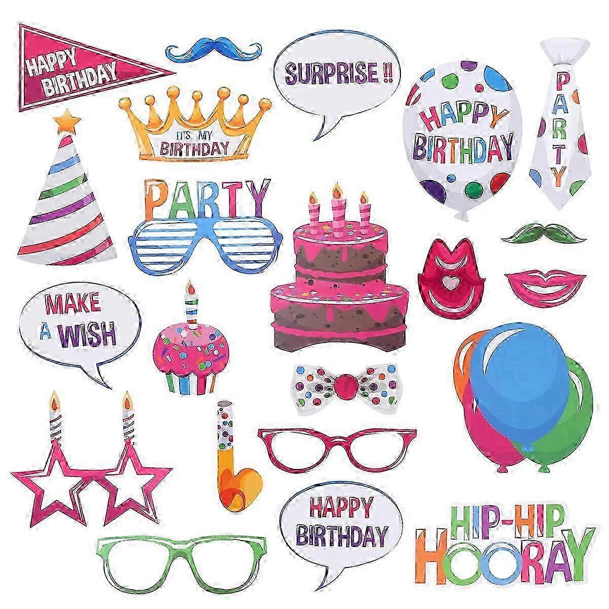 22 Pcs Photo Booth Props Funny Creative Birthday Decor for Celebrating Birthday