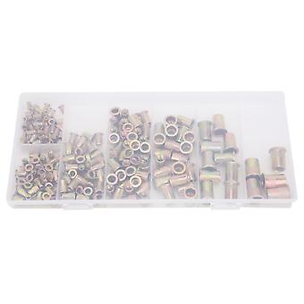 225Pcs M3/4/5/6/8/10/12 Combination Vertical Thread Rivet Nut Boxed, Color Plated Zinc