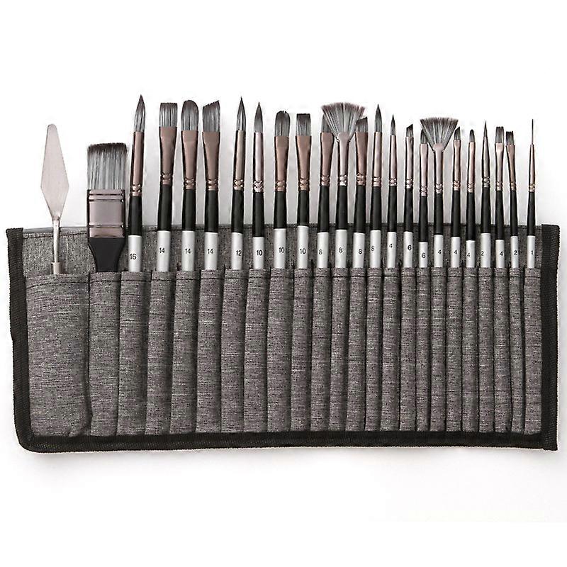 23pcs Different Sizes Paint Brushes Set Professional Nylon Hair Wooden Handle Paintbrush with Scraper Canvas Organizing Bag for Artists Children
