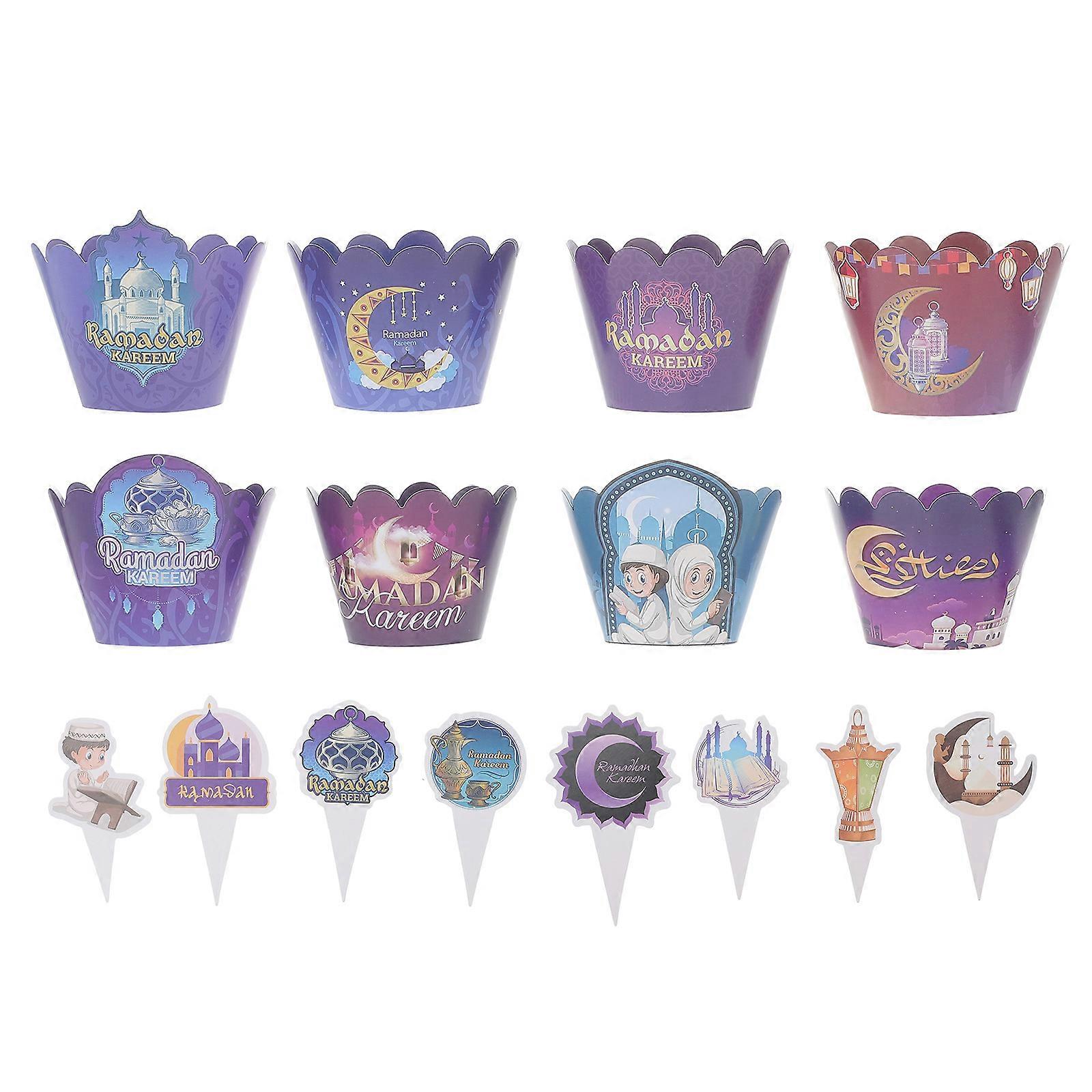 24 Sets Cupcake Wrappers Cupcake Toppers Eid Mubarak Festival Party Decoration
