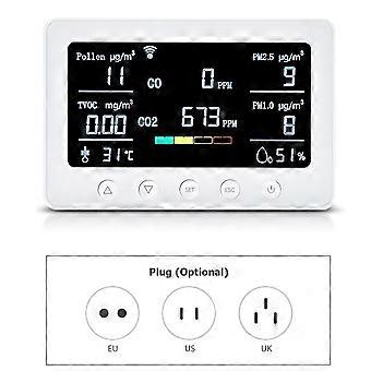 2.4GHz WiFi Air Quality Monitor 8-in-1 CO2/CO/PM2.5/PM1.0/TVOC/Pollen/Temperature and Humidity Meter with Alarm Smart Tuya APP NDIR Sensor Portable RS