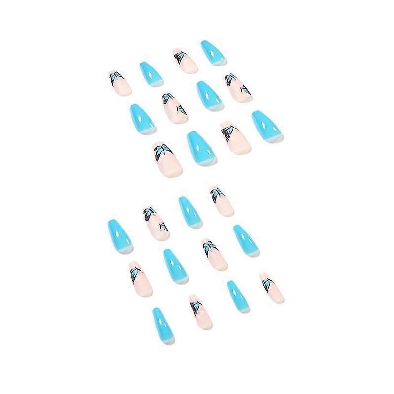 24 Pack False Nails, French, Gold Glitter, Long, Press On Nails, Ready To Stick, Stylish Nails, Sticker Set