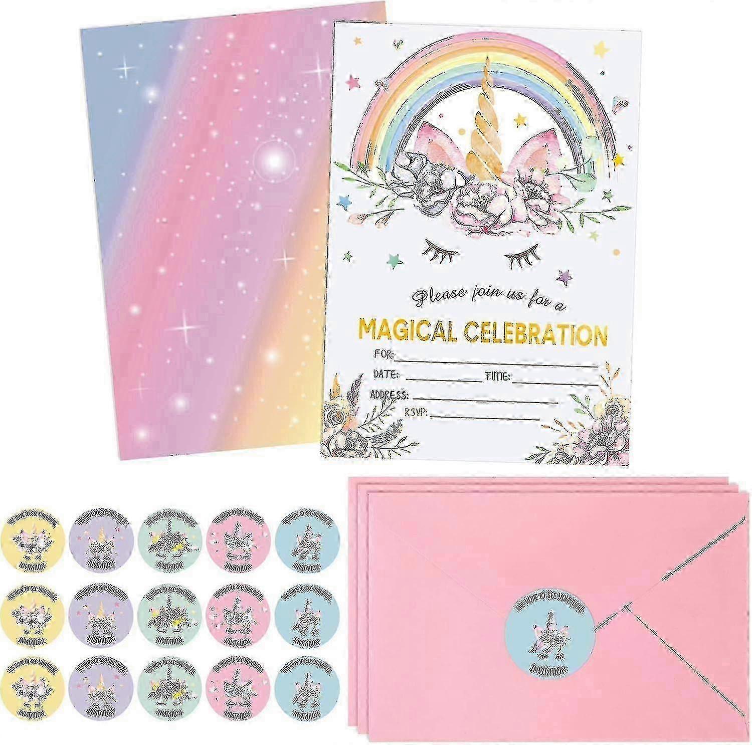 24 Pack Unicorn Birthday Invitation Unicorn Party Invitation Unicorn Invitation Card, 30 Rainbow Unicorn Sticker Labels, 24 Envelope Unicorn Party Sup