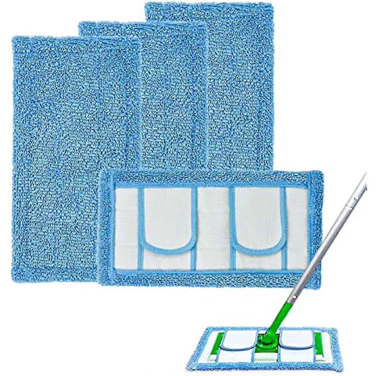 2/4 Pack Reusable Microfiber Mop Pads For Swiffer Sweeper And All 10-12 Inch Flat Mop Upgraded Wet Dry Cleaning Pads For All Hard-floor