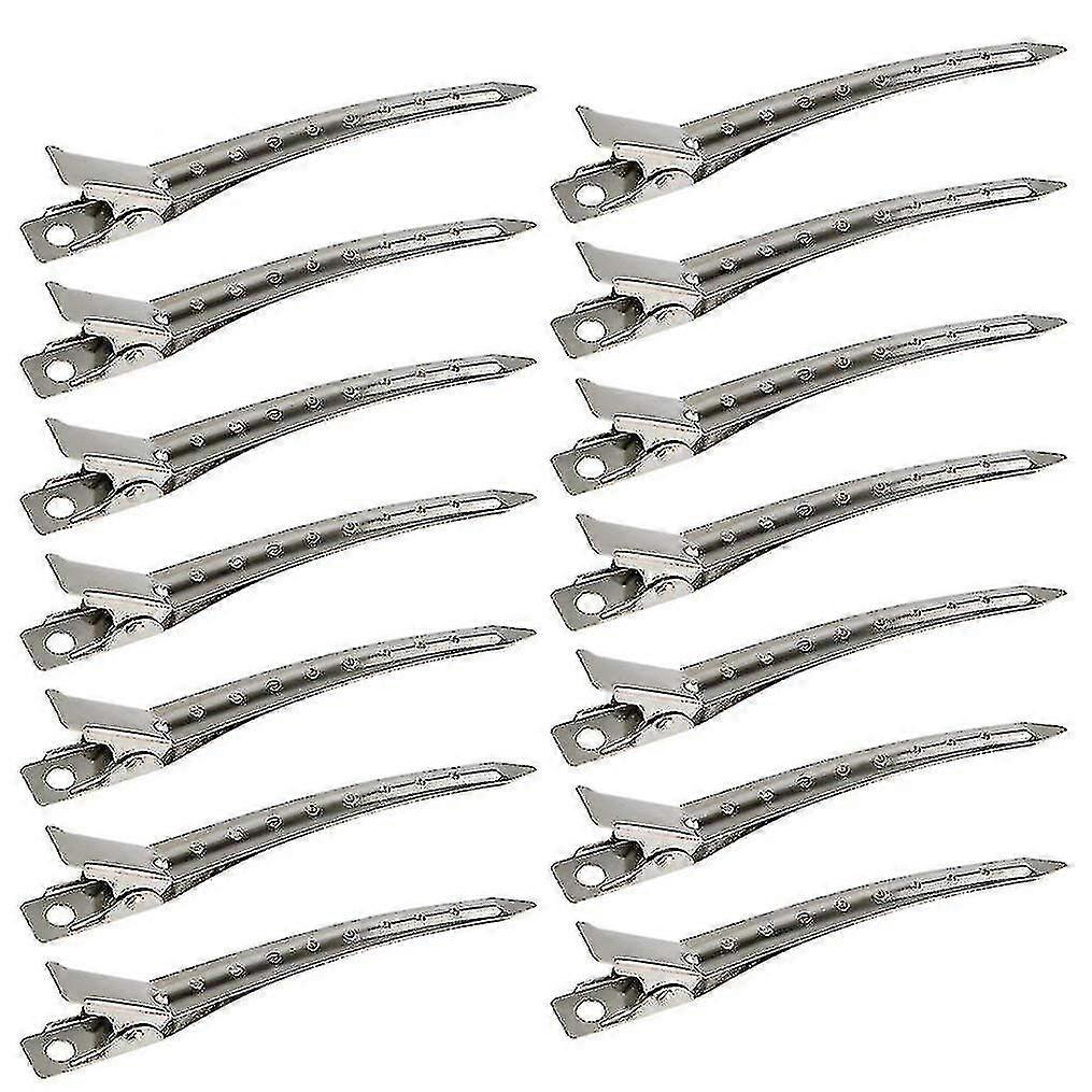 24 Packs Duck Bill Clips, 3.5 Inches Rustproof Metal Alligator Curl Clips With Holes For Hair Styling, Hair Coloring, Silver