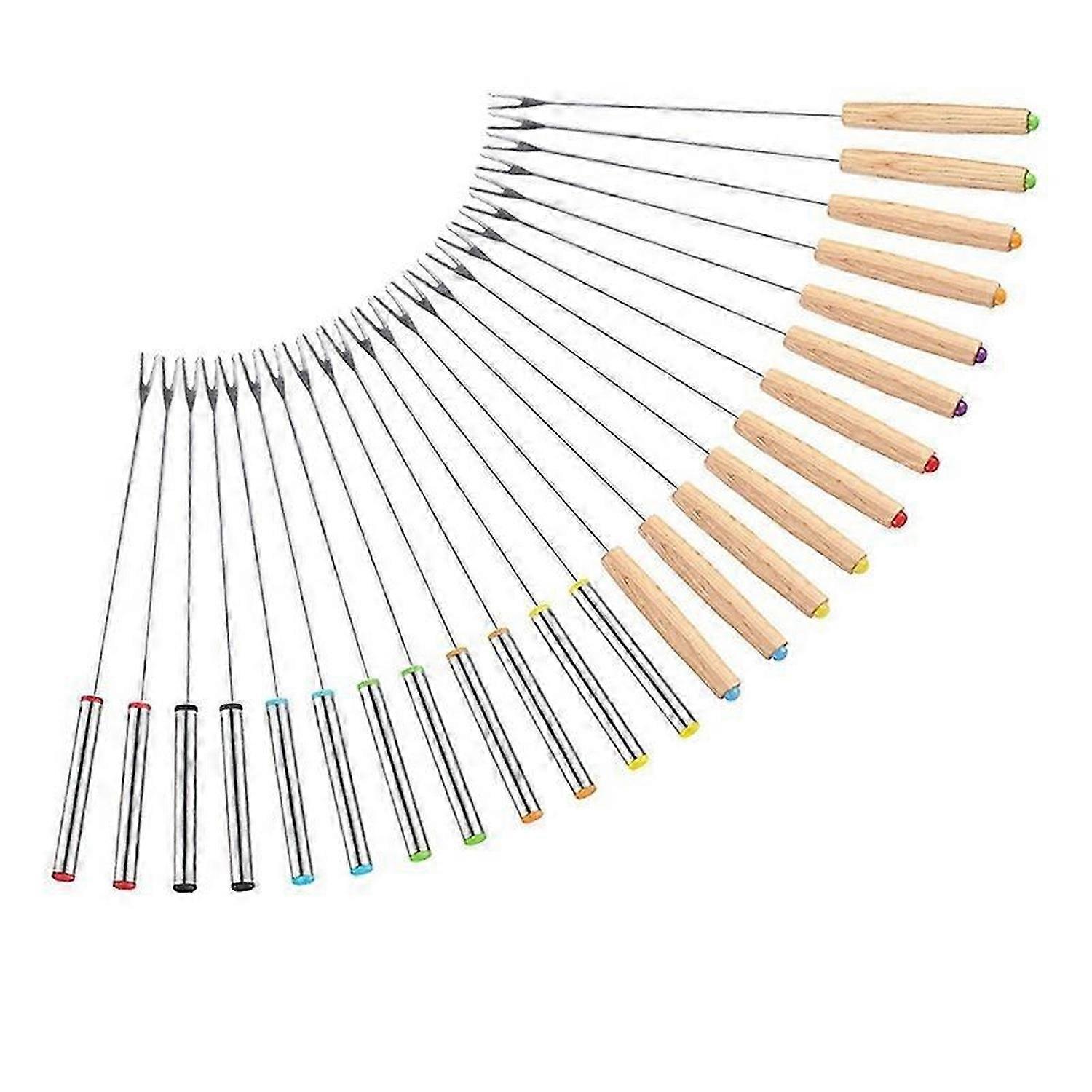 24 Pack Stainless Steel Fondue Forks, 12 Wood Handles and 12 Stainless Steel Handles, Heat Smores St