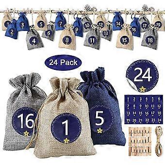 24 Fillable Advent Calendar Cloth Bag Advent Calendar for Men Women Kids with 1-24 Stickers Christmas Gift Bag