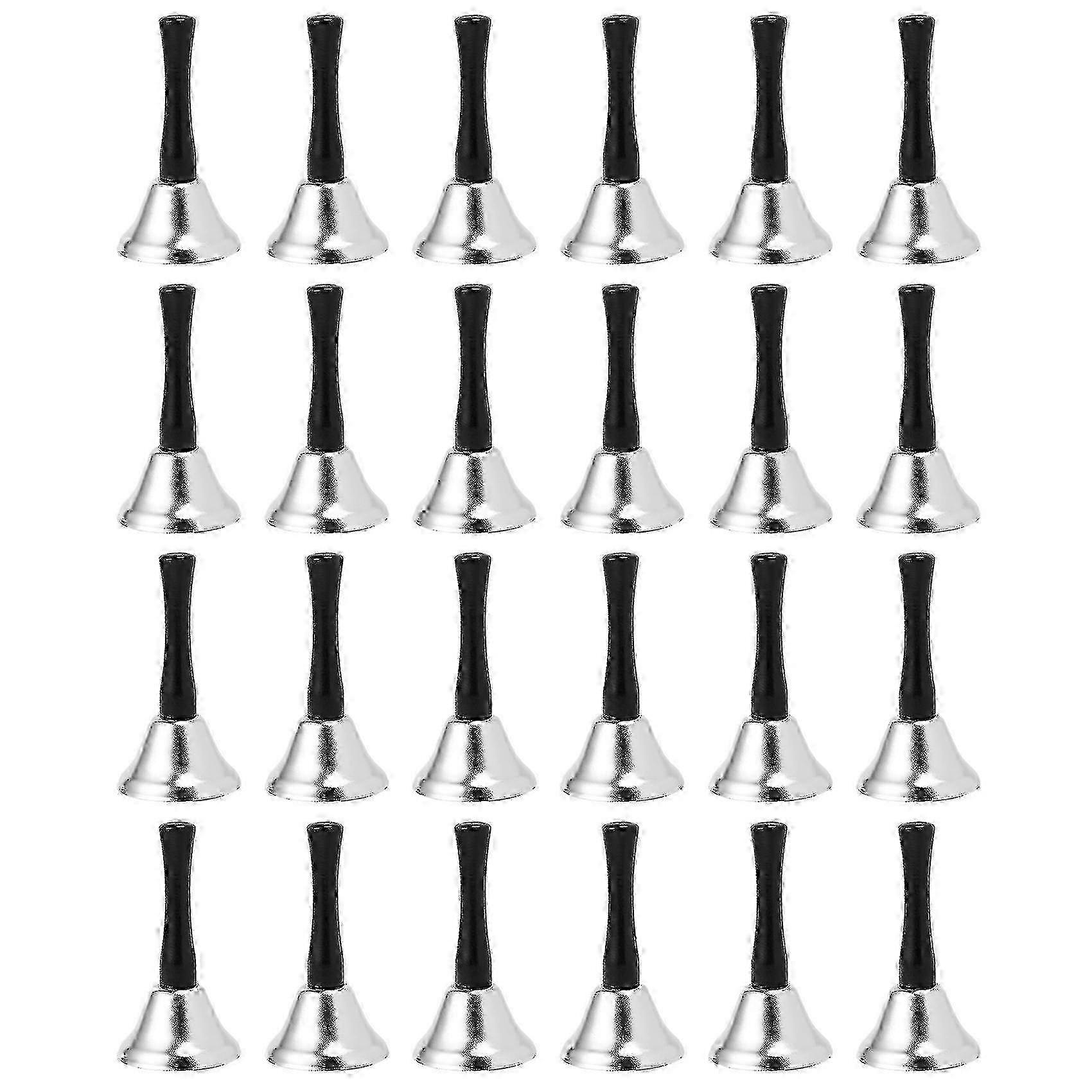 24 Pieces Hand Silver Steel Service Handbells Black Wooden Handle Diatonic Metal Musical Percussion