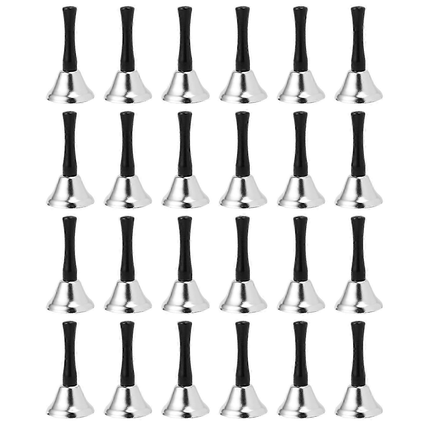 24 Pieces Hand Bells Silver Steel Service Handbells Black Wooden Handle Diatonic Metal Bells Musical Percussion (Nickel White) jn