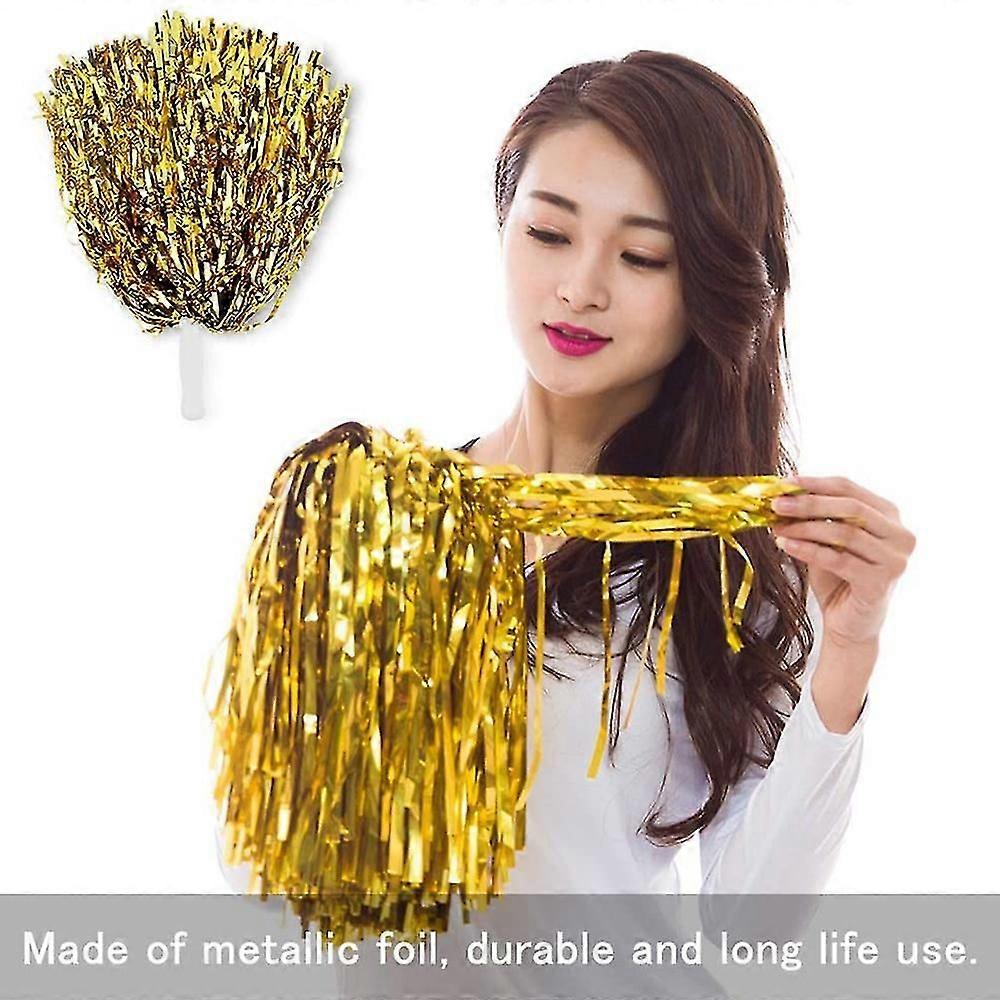24pcs Cheerleading Pom Poms Metallic Foil Cheer Pom Poms With Plastic Handle For Adults Kids Cheerl A