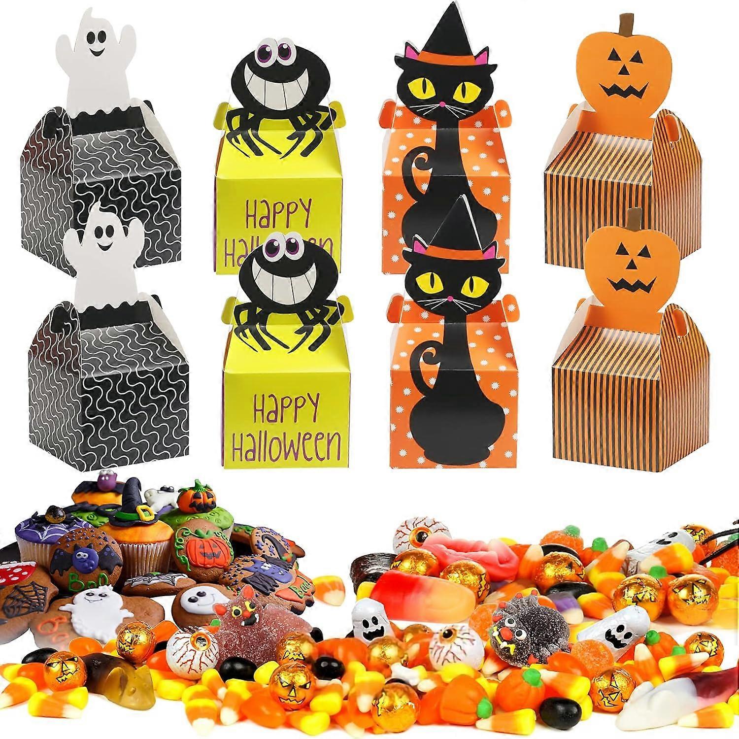 24pcs Halloween Sweet Boxes,Trick or Treat Box Candy Chocolate Cookies Snack Gift Favor with Catoon Ghost,Spider,Pumpkin,Black Cat Pattern for Kids Ha