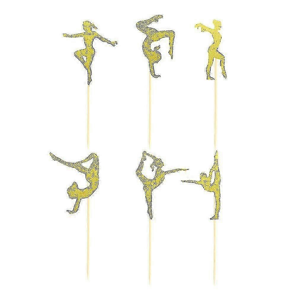 24 Pcs Cake Toppers Fitness Theme Cupcake Toppers Yoga Aerobics Party Cake Dessert Picks For Gymnastics Party Kids Birthday Party (golden)-Good