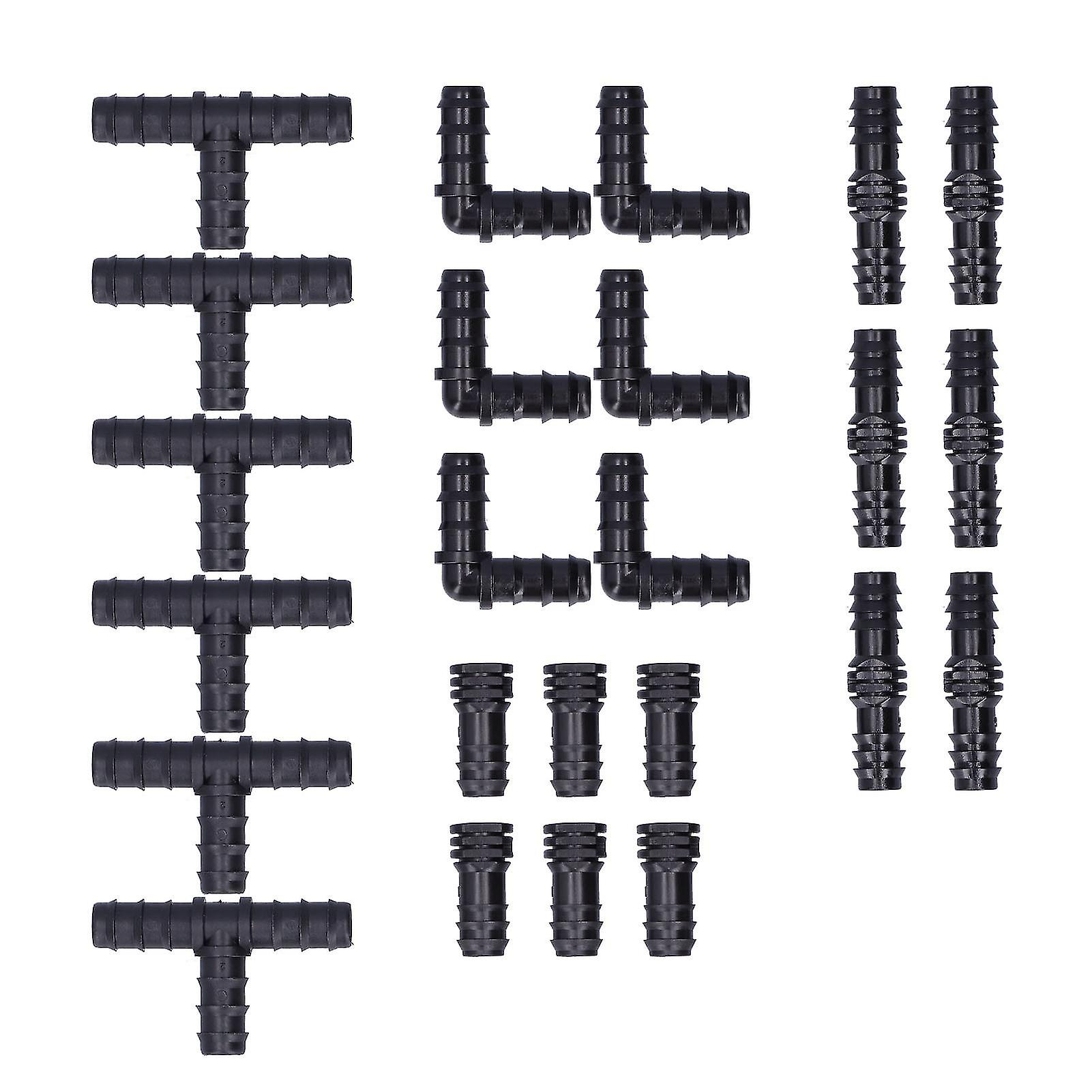 24Pcs/Set Drip Irrigation Fitting Kit 1/2 Tubing Barbed Connectors for Garden Greenhouse