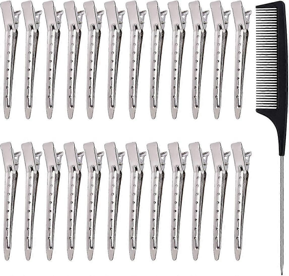 24pcs Hair Clips 3.5 Inch Duckbill Clips Metal Hairdressing Clips With Styling Comb