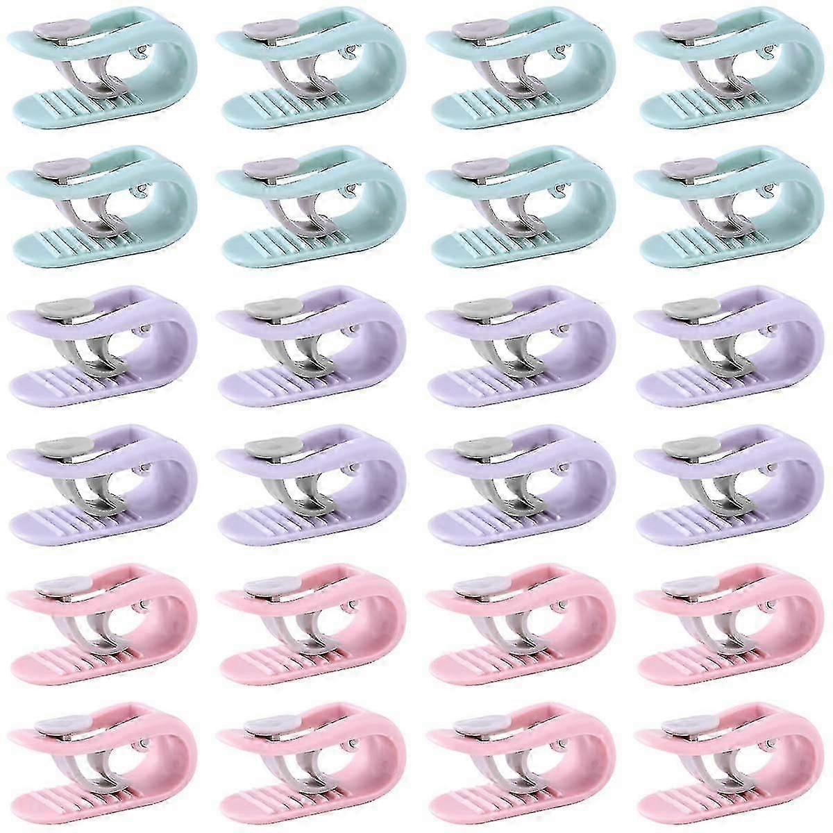 Needle free Duvet Clips: Different from the regular duvet clips, our duvet holder fixer without needles will not damage the fabric, this upgrade design will give your kids security. Unique Design: Our duvet clips adopt non-slip stripe design, they have greater friction for holding onto the covers and prevent them from moving.Youll no longer feel uncomfortable with a disorganized quilt. High Quality: Our duvet clips made of high quality PP material with full elasticity, the duvet cover clips can be reused for long time, lightweight design will not add any weight on quilt, give you a comfortable sleep. Easy to Use: Each pack have 24 duvet clips,(3 colors: green, pink, purple.8 clip holders per color) very simple to use and install it, just open the lock, push the quilt, and press the lock to lock it. It can be easily unlocked by opening the buckle.Exquisite, lightweight and beautiful, giving you a different home decoration experience. Widely Applications: It is suitable for winter quilts,summer quilts,and curtains,etc.No matter the thickness of the quilt,you can easily get rid of the quilt.These clips can also be used to seal snacks,fix clothes,curtain and other things.Very convenient to use.