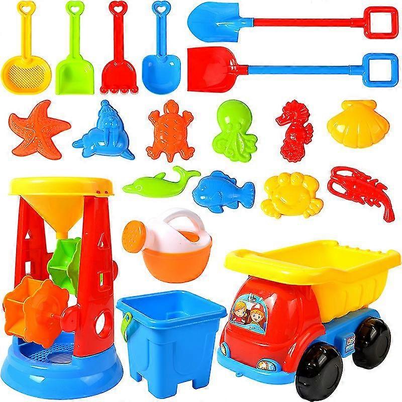 24 Pcs Beach Sand Toys Set Includes Sand Water Wheel, Sandbox Vehicle, Sand Molds, Bucket, Sand Shovel Tool Kits, Sand Toys For Toddlers Kids Outdoor