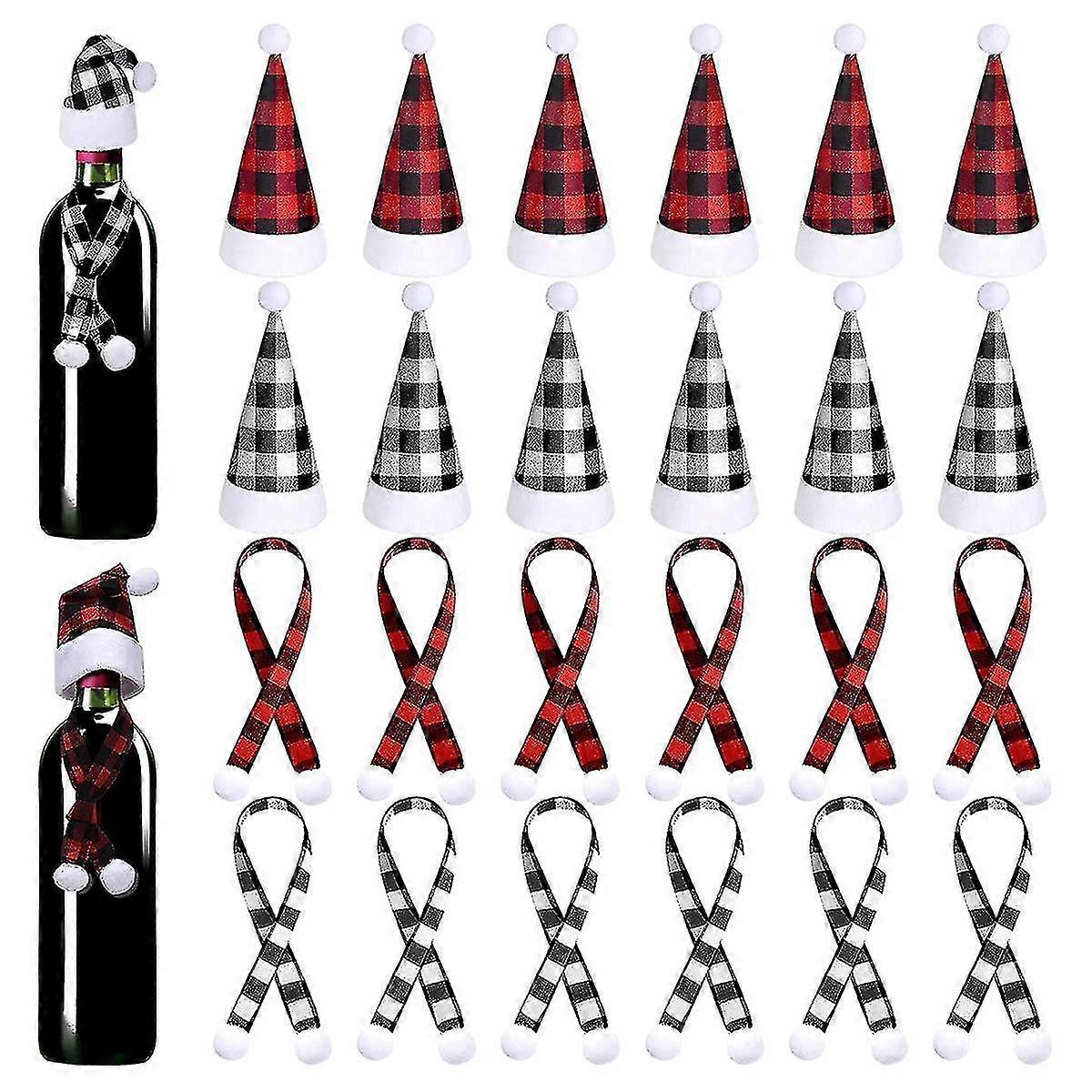 24 Pcs Mini Christmas Santa Hats And Scarf Sets Santa Hats Wine Bottle Cover Xmas Ornaments